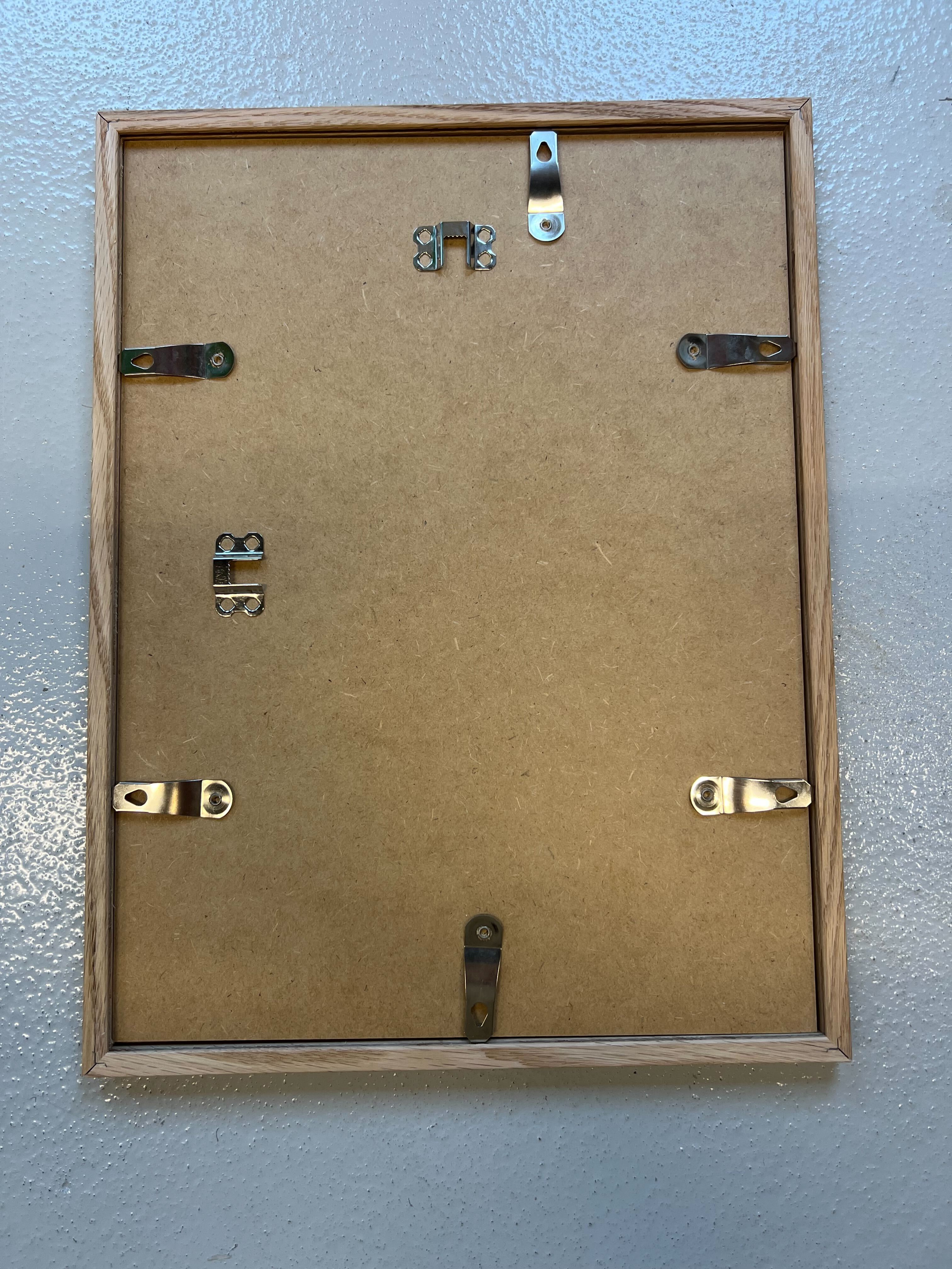 Der er ophæng på bagsiden af rammen, så du kan vælge at hænge den både lodret eller vandret, alt efter hvad der passer bedst til dit rum og din indretning.